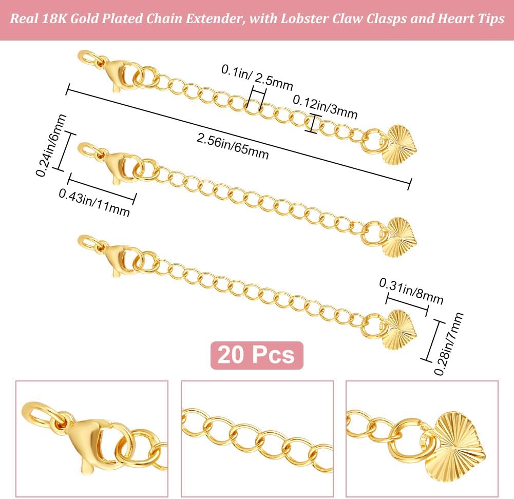 Immagina di poter trasformare qualsiasi gioiello con un tocco di eleganza dorata. Gli estensori per catene Beebeecraft placcati in oro 18 carati sono il segreto dei creativi e degli amanti dei gioielli per personalizzare collane, bracciali e cavigliere con stile inconfondibile. Realizzati con la massima cura, questi 20 pezzi di allungatori per bracciale in catena curb offrono un'opportunità unica per reinventare i tuoi accessori preferiti. La placcatura in oro 18K conferisce un caldo splendore dorato che cattura immediatamente l'attenzione, regalando ai tuoi gioielli una luminosità senza pari. La base in ottone garantisce resistenza e durata nel tempo, evitando problemi di ruggine o scolorimento anche dopo utilizzi frequenti. Ogni estensore è stato progettato pensando alla praticità: i moschettoni a pinza di grano permettono un'applicazione semplice e sicura, mentre le deliziose piastrine a cuore aggiungono un elemento decorativo che trasforma un semplice accessorio funzionale in un dettaglio di design. Con una lunghezza di circa 65 mm e una larghezza di 3 mm, questi estensori si adattano perfettamente alla maggior parte delle catene, consentendoti di modificare la lunghezza dei tuoi gioielli in base alle tue esigenze o al tuo outfit, senza compromettere l'estetica originale del pezzo.